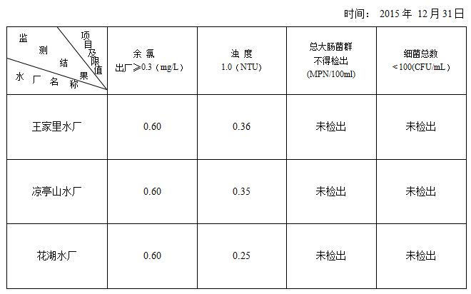 發(fā)布時(shí)間:2015-12-31 所屬欄目:水質(zhì)報告 點(diǎn)擊次數:4999 返回上頁(yè)