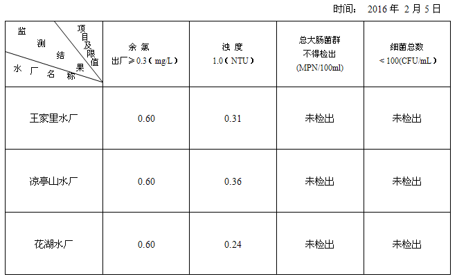 發(fā)布時(shí)間:2016-02-08 所屬欄目:水質(zhì)報告 點(diǎn)擊次數:4419 返回上頁(yè)