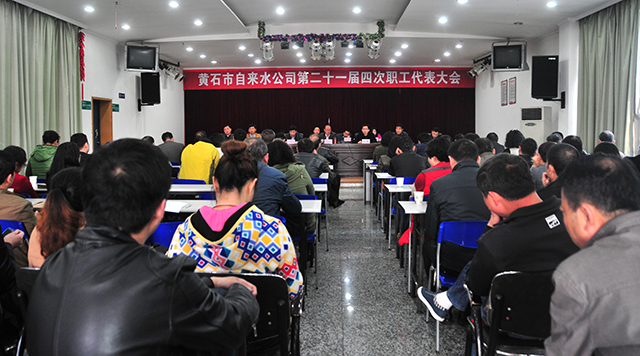 3月30日,公司在二樓會(huì )議室召開(kāi)了第二十一屆四次職工代表大會(huì ),來(lái)自公司各單位的64名職工代表、7名退休職工代表、21名列席代表在此共謀發(fā)展大計,公司領(lǐng)導班子成員出席了會(huì )議。會(huì )上,公司黨委書(shū)記余曦同志代表班子作了2014年工作報告,他在報告中客觀(guān)詳實(shí)地總結了2014年公司的各項工作,重點(diǎn)對安全生產(chǎn)、供水項目建設、DMA系統建設、行評活動(dòng)、相關(guān)產(chǎn)業(yè)、黨建群教工作七個(gè)方面進(jìn)行了總結,各項工作取得了實(shí)效,全年實(shí)現售水量7650.34萬(wàn)噸;實(shí)現經(jīng)營(yíng)總收入2.17億元;實(shí)現利潤1442.55萬(wàn)元,上繳稅費1050.46萬(wàn)元;完成供水管網(wǎng)改造11.1公里;新增用戶(hù)11685戶(hù);產(chǎn)銷(xiāo)差率23.76%;管網(wǎng)水質(zhì)綜合合格率達99.9%。報告中還強調了2015年的主要計劃和重點(diǎn)工作:一是開(kāi)展“制度執行年”活動(dòng),實(shí)現制度約束力,提升各項工作管理水平;二是開(kāi)展供水普查工作;三是進(jìn)一步提升供水水質(zhì);四是繼續推進(jìn)供水智能信息化建設;五是進(jìn)一步提升供水服務(wù)質(zhì)量和水平;六是做好“十三五”供水發(fā)展規劃編制工作;七是全面加強宣傳工作,傳遞供水事業(yè)正能量;八是加強作風(fēng)建設,全面落實(shí)“兩個(gè)責任”,在全公司大力營(yíng)造風(fēng)清氣正、和諧共事、創(chuàng )先爭優(yōu)的干事創(chuàng )業(yè)氛圍。