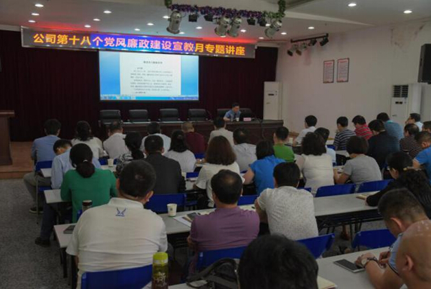 “舉辦一場(chǎng)專(zhuān)題講座”。 5月17日上午,公司在會(huì )議室舉辦了一場(chǎng)專(zhuān)題講座和廉政黨課。邀請了黃石港區檢察院預防科黃治華同志做了一場(chǎng)“預防貪污犯罪”的專(zhuān)題講座。黃治華從最新的法律法規和司法解釋解讀了貪污罪構成要件。公司黨委書(shū)記、董事長(cháng)余曦向在場(chǎng)人員講了題為“貫徹六中全會(huì )精神,推進(jìn)全面從嚴治黨”的廉政黨課。從充分認識十八屆六中全會(huì )的意義;全面從嚴治黨,必須旗幟鮮明講政治講規矩;充分發(fā)揮黨委和黨支部組織作用;貫徹民主集中制;規范黨內政治生活;加強黨內監督;深入推進(jìn)反腐敗工作等七個(gè)方面講解了《準則》的基本精神、《條例》的核心要義。