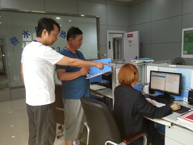 圖為:紀檢員在“供水服務(wù)熱線(xiàn)”對用戶(hù)來(lái)電故障報修、反映問(wèn)題等落實(shí)情況進(jìn)行檢查。