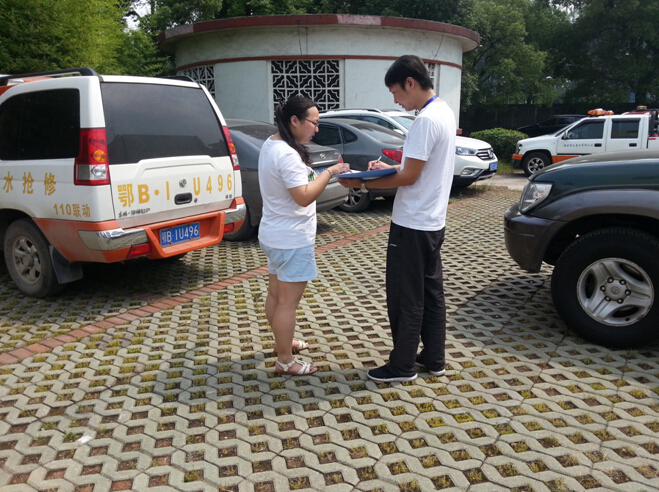 圖為:紀檢員在涼亭山水廠(chǎng)核對、查看車(chē)輛定點(diǎn)停放情況。