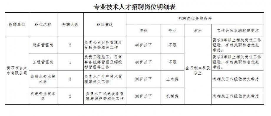 3、本次招聘最終解釋權為黃石市自來(lái)水有限公司。