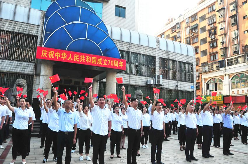 為慶祝中華人民共和國成立70周年,9月30日清晨,市自來(lái)水有限公司舉行隆重升旗儀式。公司黨委領(lǐng)導班子、近200名干部職工在莊嚴雄壯的國歌聲中,排列著(zhù)整齊的隊伍,面向國旗行注目禮、唱國歌,凝視著(zhù)鮮艷的五星紅旗冉冉升起。隨后,全體職工高唱《我們是光榮的供水人》,公司廠(chǎng)旗在歌聲中徐徐上升,在朝陽(yáng)映照下,藍色旗幟上的水徽熠熠生光。最后,大家揮舞著(zhù)手中的國旗齊聲高唱《我和我的祖國》,嘹亮的歌聲中洋溢著(zhù)滿(mǎn)滿(mǎn)的自信心和自豪感,將氣氛推向了高潮。在祖國成立70周年之際,公司將舉行莊嚴的升旗儀式與“不忘初心、牢記使命”主題教育相結合,進(jìn)一步激發(fā)全體干部職工愛(ài)國之情,凝聚團結奮進(jìn)、昂揚向上的正能量,激勵鼓舞干部職工不斷提升企業(yè)優(yōu)質(zhì)供水,誠信服務(wù)的理念和意識,大力優(yōu)化營(yíng)商環(huán)境,為服務(wù)黃石市高質(zhì)量發(fā)展提供有力的供水保障。