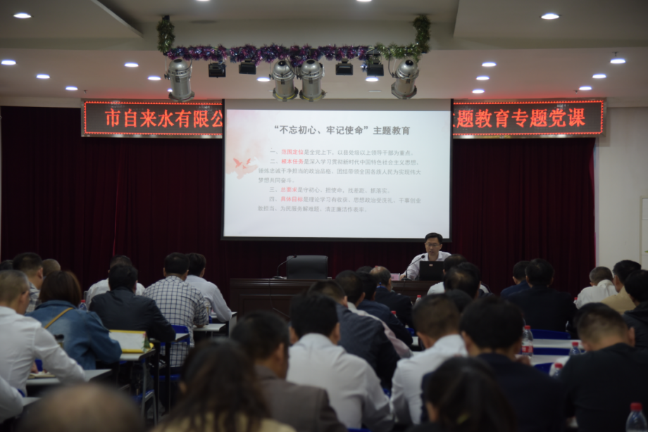 余曦提到,在新時(shí)代的背景下,國企黨員應將理論與實(shí)踐結合,對初心和使命尋根問(wèn)本,扎實(shí)做到信念、政治、責任、能力、作風(fēng)“五個(gè)過(guò)硬”,以“不忘初心、牢記使命”的政治清醒,全力做好新時(shí)代供水工作。公司黨委副書(shū)記、總經(jīng)理張昌銳主持并強調,公司各單位主要領(lǐng)導干部作為關(guān)鍵少數,要通過(guò)集中學(xué)習的形式,領(lǐng)悟主題教育的重大意義,引導廣大黨員不折不扣貫徹落實(shí)相關(guān)要求,確保主題教育扎實(shí)推進(jìn),取得實(shí)質(zhì)成效。公司領(lǐng)導班子成員、各基層單位班子成員及機關(guān)全體黨員近100人參加。