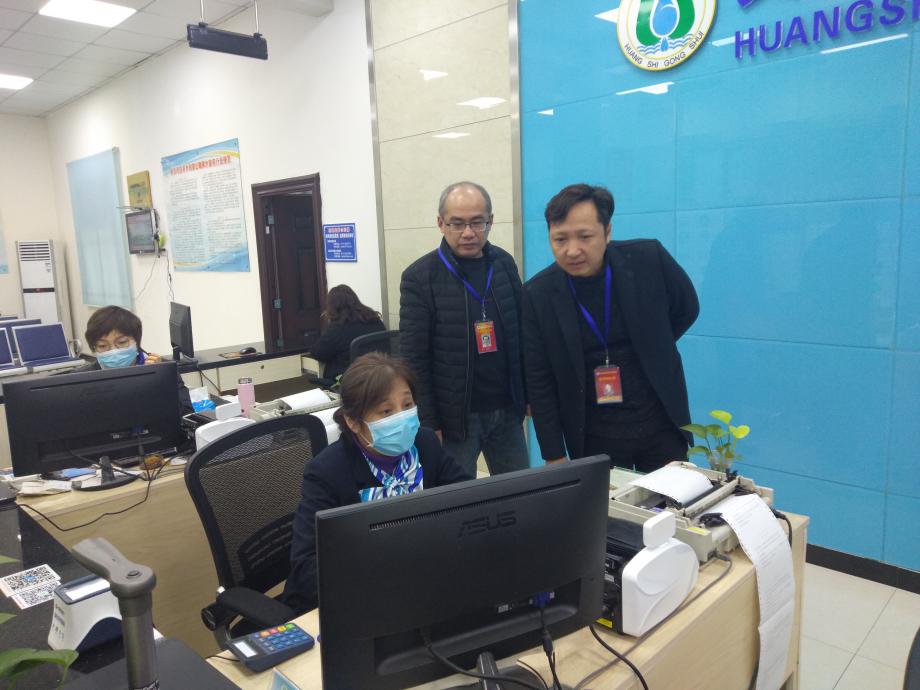 圖為檢查組查看中心收費大廳水費收繳情況。