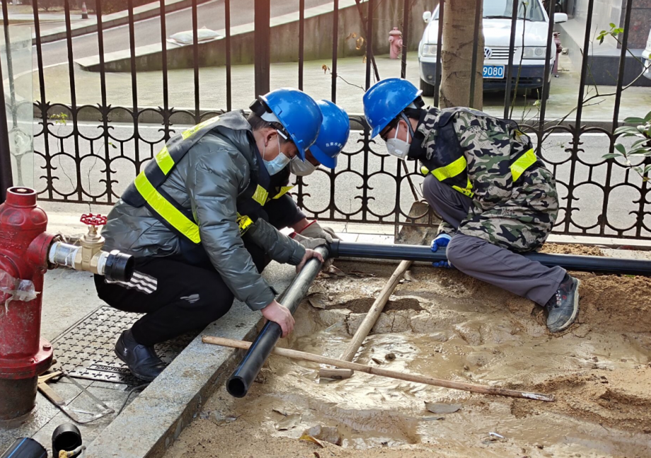 在抗擊疫情特殊時(shí)期,公司克服材料采購、車(chē)輛調度、人員安排等困難,特事特辦,當天便迅速安排公司客服中心、設計公司以及建設工程公司相關(guān)負責人趕赴現場(chǎng),進(jìn)行勘測設計、制定方案并組織材料施工,僅5小時(shí)便完成外部供水管道敷設,具備了通水條件。