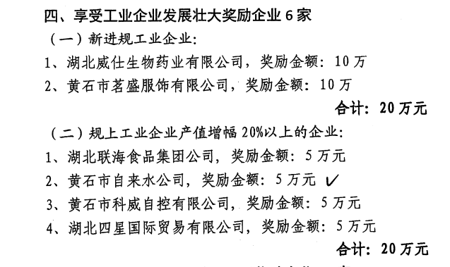 4月15日,市自來(lái)水有限公司獲得黃石港區人民政府發(fā)放的工業(yè)企業(yè)發(fā)展壯大獎金5萬(wàn)元整,以獎勵該公司作為規上企業(yè)在2019年度產(chǎn)值增幅達到20%以上的成績(jì),黃石港區共有4家單位獲此榮譽(yù)。