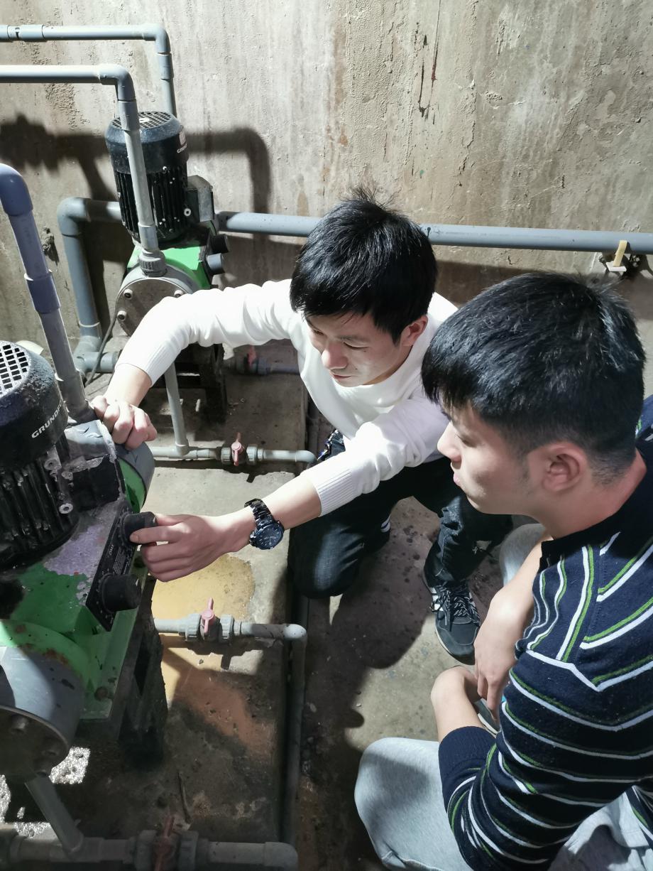 圖為競賽申創(chuàng )對象王家里水廠(chǎng)生產(chǎn)技術(shù)科科長(cháng)嚴志勇發(fā)揮“傳幫帶”作用,帶領(lǐng)青工進(jìn)行技術(shù)改造。