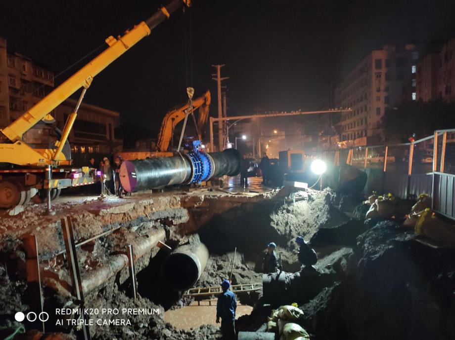 黃石水司實(shí)施有軌電車(chē)磁湖路供水管線(xiàn)改遷工程 黃石水司夜間突發(fā)爆管搶修