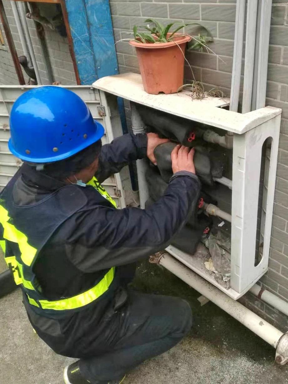 營(yíng)銷(xiāo)公司工作人員在為水表“穿冬衣”