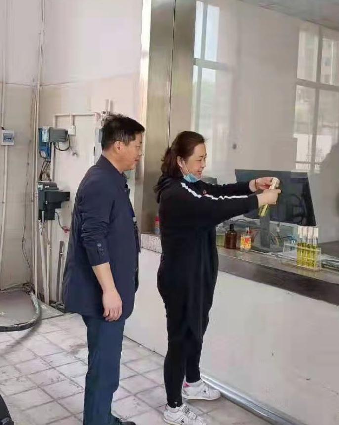 圖8:下陸加壓總站紀檢委員苗鵬監督檢查水質(zhì)檢測情況