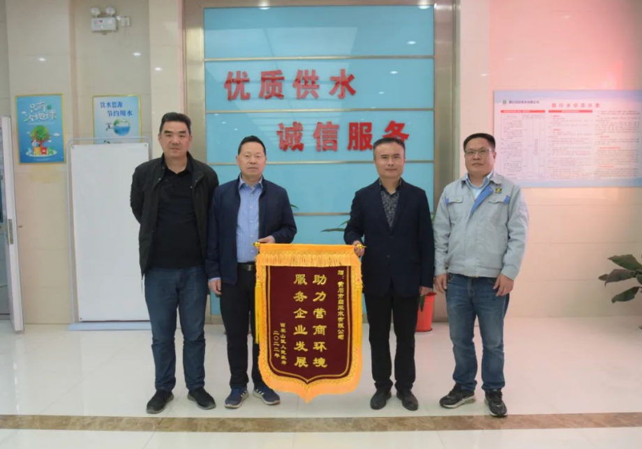 4月15日上午,西塞山區(qū)項目辦主任及企業(yè)代表將一面寫有“助力營商環(huán)境 服務企業(yè)發(fā)展”的錦旗送至黃石市自來水有限公司,“點贊”高效優(yōu)質供水服務。