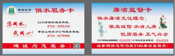 “您用水,我用心!誠摯聘請您作為我們的廉潔監督員!我們竭盡所能為用戶(hù)安全用水保駕護航” 黃金山供水分公司紀檢委員葉翔主動(dòng)點(diǎn)對點(diǎn)上門(mén),向供水區內企業(yè)誠意遞上《供水服務(wù)廉潔監督卡》。在優(yōu)化營(yíng)商環(huán)境國家測評中,黃石獲得“用水指標”考核優(yōu)秀等次,“用水費用指標”獲評滿(mǎn)分,成為全國最佳表現……,細細回想,這是從一場(chǎng)名為“廉潔優(yōu)質(zhì)服務(wù)”競賽活動(dòng)開(kāi)始的。