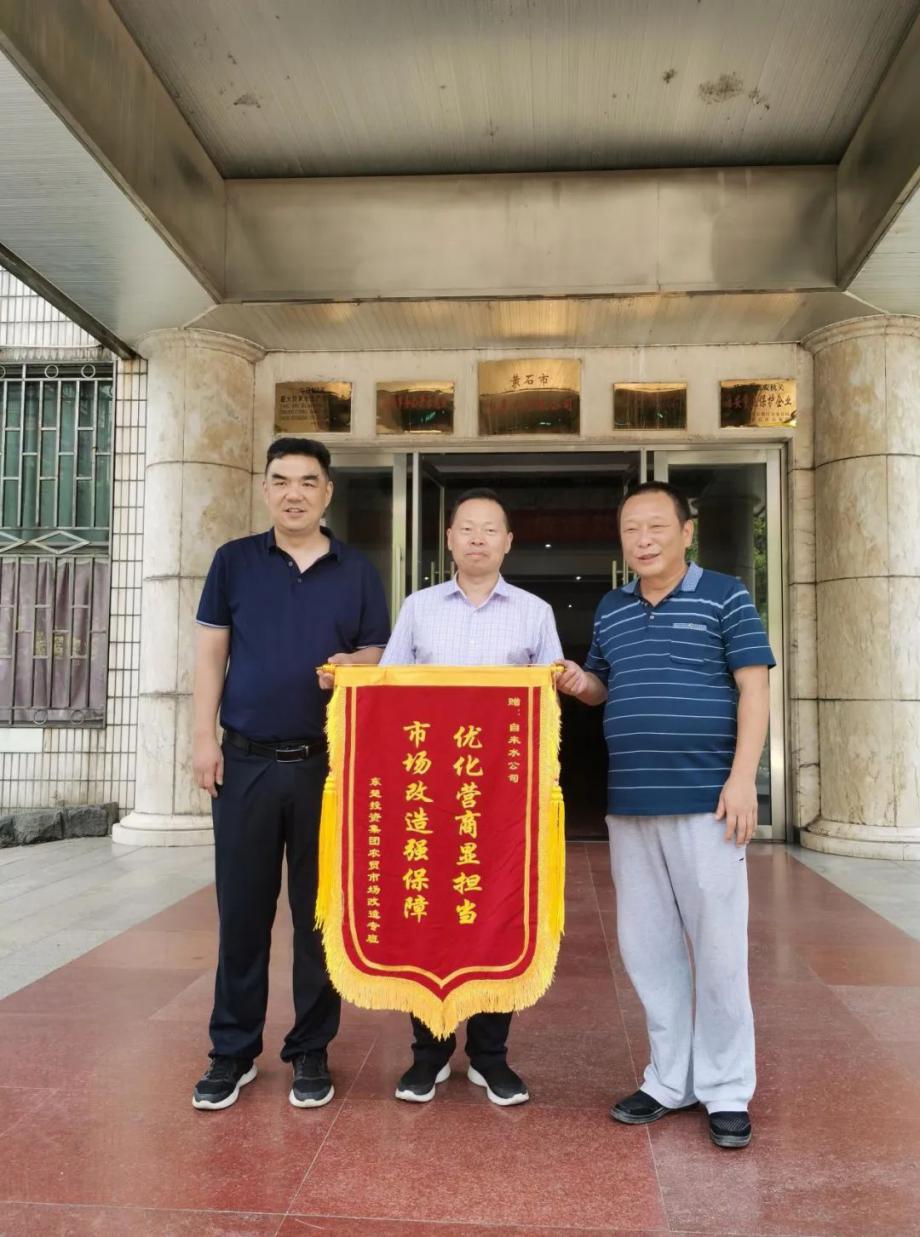 “感謝自來(lái)水公司及時(shí)為我們市場(chǎng)裝好水表,我們新市場(chǎng)才能按時(shí)開(kāi)業(yè)”。7月28日上午,市東楚投資集團農貿市場(chǎng)改造專(zhuān)班將“優(yōu)化營(yíng)商顯擔當 市場(chǎng)改造強保障”錦旗送來(lái)市自來(lái)水有限公司,感謝該公司的“及時(shí)水”化解了農貿市場(chǎng)的“喬遷憂(yōu)”。