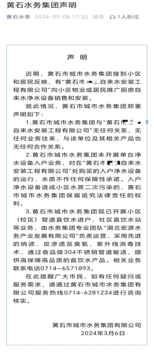 黃石市城市水務(wù)集團有限公司發(fā)布的聲明。