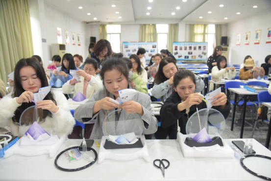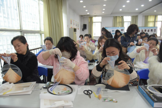 活動(dòng)開(kāi)始,在聽(tīng)完手作老師關(guān)于流沙畫(huà)制作過(guò)程的介紹,參與活動(dòng)的女職工們迫不及待開(kāi)始投入沙畫(huà)的創(chuàng )作。將細小的砂礫晶體從兩塊透明玻璃之間的小孔內一點(diǎn)點(diǎn)注入,待向玻璃之間注入凈水、封口后,一副層次分明、變化萬(wàn)千的“治愈系”的沙畫(huà)便制作完成了。
