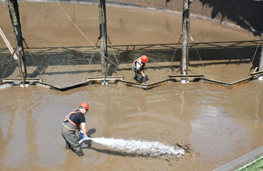 7 月下旬,青山湖污水廠(chǎng)拉響 “警報”。1 號二沉池刮泥機因連日高溫下長(cháng)期高負荷運轉,刮泥板零部件扭曲變形、脫落。要知道,刮泥機一旦停擺,污水處理沉淀環(huán)節將陷入混亂,進(jìn)而影響整個(gè)工藝流程的穩定運行。為將對污水處理工藝的影響降到最低,市污水公司迅速行動(dòng),多次組織研討,精心優(yōu)化維修方案。在完成向上級報備,并采取降低進(jìn)水量、排水放空等預處理措施后,維修中心與青山湖廠(chǎng)部緊密配合。維修人員身著(zhù)厚重防護裝備,毅然踏入池底。高溫下,他們分工明確,沖洗、檢測、拆卸、安裝等工序有條不紊地進(jìn)行著(zhù),專(zhuān)注修復更換刮泥機破損部位。經(jīng)過(guò)不懈努力,7 月 30 日,1 號二沉池恢復正常運轉。